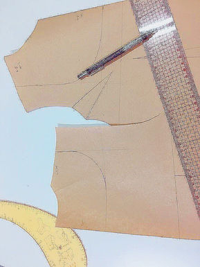 1.打版課程教學版型為基本洋裝 ( 如左圖 ),課程中會教版型變化應用成各種款式
